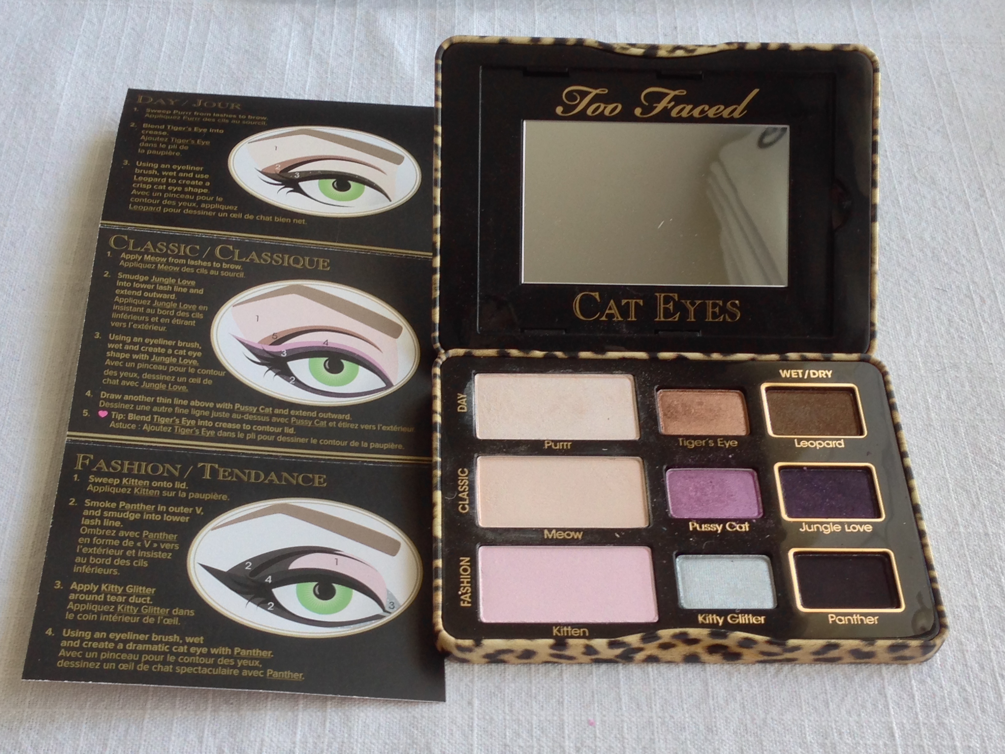 Il y a quelques semaines, j’ai découvert la palette « cat eyes » de Too Faced . J’ai décidé de me l’offrir pour le mariage d’une amie très proche (joli prétexte avouez ; ) ) mais surtout parce que les couleurs me correspondent et le concept correspond à mon envie du moment de dompter les eye liners : )